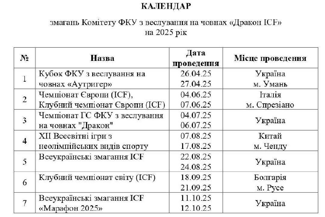 Новини від Комітету ФКУ з веслування на човнах "Дракон"